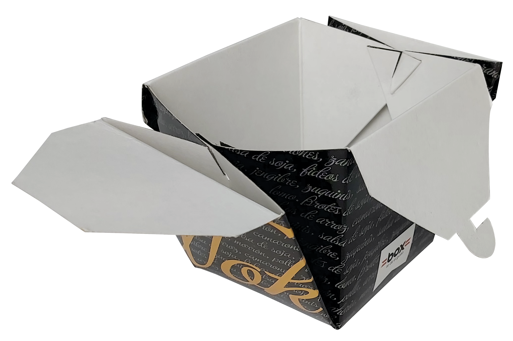 Caja en cartulina triplex 320g./m2. Impresa tres colores en frente. Laminado exterior.